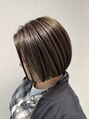 表面の真ん中だけを、ケアブリーチして、全体にほんのりアッシュベージュをオン◯ボブに相性の良いカラーです!仕上げはサラッとオイルをつけるだけな、スタイリングも簡単なスタイルです!