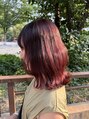切りっぱなしに、表面だけ波巻きにして、オイルをサラッとつけるだけで◯明るめのオレンジレッドで、色味もしっかりしてるけど、明るさもあるスタイルです!