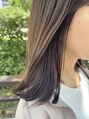 インナー部分だけケアブリーチして、濃いめのバイオレットを◯インナー以外は、寒色よりの明るめのベージュで、コントラストもしっかりつけたスタイルです◯カットは切りっぱなしで、オイルをサラッとつけるだけで良いスタイルです!