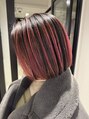 表面だけをケアブリーチして、ピンクよりの赤を◯ミニボブにぴったりなアンブレラカラーです!オイルをさらっとつけるだけでOKな、スタイリングも簡単なスタイルです!