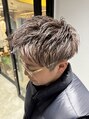 サイドとバックはしっかり刈り上げて、ワックスやジェルが馴染みやすいように軽めな質感のスタイルです!ケアブリーチして、ややくすむベージュで透明感も◯