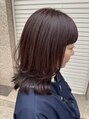 切りっぱなしに、表面だけレイヤーを入れて、レイヤー部分をワンカールするだけで動きが出るスタイルです!カラーはピンク強めのピンクベージュで、艶のあるスタイルです!