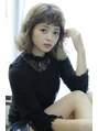 束感強めのビックカールが自然になじむのは首元をキュッと締めたカットのおかげ。メリハリの効いたフォルムと上品なベージュカラーでおしゃれ偏差値高めのボブスタイルが完成!