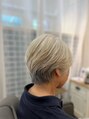 ショートグレイヘアーが素敵なショートスタイル。表面の毛流れはキレイに出しながら、耳周りを軽くすることでスッキリと見えます。