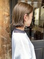 顎下のボブ。カラーはイルミナカラーのハイトーンのグリーングレージュ。透明感があり春にオススメカラーになります。ダメージも最小限に抑えるカラー剤なので是非まだイルミナカラーをやったことない方にオススメです^ ^