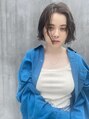 ボブスタイル。カラーはダメージの少ないイルミナカラーをチョイス。透け感が出るようにアッシュ系カラーに。全体にデジタルパーマを大きめにかけました。