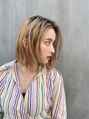 顎下のボブスタイル。根本を少しあけて毛先までケアブリーチをしてその後ベージュ系カラーをかぶせます。根本を少しあけることでお洒落で馴染みのいいスタイルになります。
