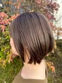 艶髪ショートレイヤートップの長さを長めに取り、襟元にレイヤーをいれることで、ボリュームの出やすい方でも、スッキリまとまるスタイルに!カラーはイルミナカラーで、ブリーチなしでもツヤと透明感を実現出来ます。
