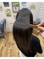 しっかりリッジのあるクセを縮毛矯正で取るには強い薬剤が必要になります♪僕は強い薬剤に栄養を足していくことで薬剤の強さを引き算しています♪大事なのはお客様の髪に合う必要最小限で薬剤調節をするということです♪