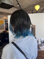 インナー部分をブリーチ後にターコイズカラーをオン♪ダメージレス処理もしっかりと行ってます。