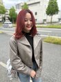 赤みを抑えた深みのあるレッドカラーが魅力。柔らかく巻いた毛先が、女性らしさとこなれ感を演出します。ツヤ感のある質感で大人可愛い印象に。
