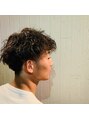 サイドを6mmのツーブロックで、バックは6mmのグラデーションカット。マッシュベースなのでトップは長めに設定し、アクセントをつけるため毛量調整でランダムな動きをプラス。パーマはベース広めのツイストパーマで動きを出す。