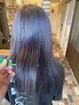 光に当たると透明感と柔らかさのでるシルバーグレーです。ケアブリーチでダメージを軽減しながらカラーします。oggiottoトリートメントでツヤツヤに。