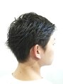 サイドはツーブロック風、襟足は刈り上げないでジェルスタイリングに合わせてトップとフロントはボリュームが出るように切りっぱなしたヘアスタイル。しっかり動いて見える部分とアウトラインを軽くすることで柔らかい印象を出したヘアスタイル♪