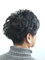バックに重心をおいた、ひし形スタイル。トップは短め、サイドは低めにツーブロック5ミリ、襟足からトップが『く』になるようにカット。パーマをかける部分とかけない部分を作ることで、よりナチュラルでキープされる上品でエアリーなウィングパーマに♪