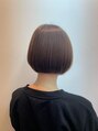 襟足ギリギリで切る事で、首を長く見せる事をポイントにしています。クラシカルなスタイルになるの、で重く見せないように少し明るい仕上がりにしています。