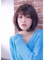 小顔に見える厚めバングの斜めバング。流し前髪の大人かわいい、毛先のみアンニュイカール。モダンショートとグレージュショートの混ざったスタイルです。無造作な毛先はワンカールで巻いてます。前下がりだけどマッシュなスタイルで黒髪でも似合います。