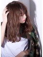 小顔に見える厚めバングの斜めバング。流し前髪の大人かわいいアンニュイカール。長めのロブスタイルです。くびれミディで毛先はワンカールで巻いてます。無造作なふわミディのロブスタイルで伸ばしかけや黒髪はもちろんセンターパートでも個性的です。