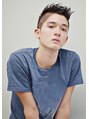 2ブロックのショートデザインです。いつも撮影でお世話になっているモデルくんが切りに来てくれました。海外アーティストのような雰囲気の攻めたカットデザインがおしゃれさを加速させます。実際は前回ブリーチしていたのでトーンダウンしています
