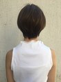 女性らしい柔らかさを残したショートスタイルです。重くなりやすい耳周りはスッキリとさせ、襟足は切りすぎず長さを残すことによりボーイッシュにならず女性らしさを演出できます♪夏に向けてスッキリショートおススメです!!