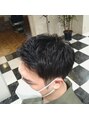 短めのツーブロック刈り上げでさっぱりとさせてトップはクセを活かしてカッコよくセットできるようにアップバングでもおろしてもキマる!