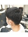サイドはツーブロックでネープは高めに刈り上げですっきりとトップはやや短めにカットし癖があっても扱いやすくカッコよく