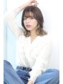 巻きすぎずに、毛先外ハネワンカールに巻いてオイルでほぐしてナチュラル仕上げ☆☆.くすみブルー/ダークアッシュ/ニュアンスカラー/暗めカラー/グレージュ/ことりベージュ