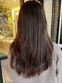重めに見えやすいロングヘアは、透明感のあるヘアカラーがオススメです。 カラーは、ブルー、ベージュ、ブルーバイオレットをを混ぜ、赤味をおさせて柔らかいツヤ髪に!カットも重めだけどふんわりと動きが出る様にカットしております。