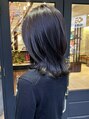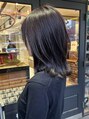 ミディアムのレイヤーカット。アヴェダカラー新色のバイオレットグレーは、透明感のあるグレー。暗めに透明感を出したい方にオススメです。