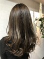 カラーエステで栄養を入れながらハイライトを活かしたツヤカラーに。毛先をワンカールで大人ロングの完成☆