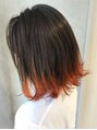 毛先のみ1回ブリーチしています!より強い発色を求めるのであれば2回をお勧めします!(^^)毛先以外はオレンジを強調できるようアッシュブラウンで赤みを消した色に染めています!