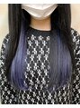 前回つけたインナーエクステを染めてます!インナーにホワイトのエクステを付けてからブルーに染めているので、1度のエクステで2回カラーが楽しめます!
