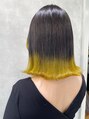 ダークグレーに裾イエロー♪姫カットの毛先にもイエローのワンポイント◎イエローはカラーバターで入れてます!