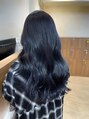 ブリーチ1回のブルーブラックカラー♪暗めのカラーでもブリーチしてあげることでより透明感がでて、色落ちも可愛くなります◎