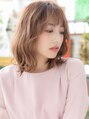 斜めバングや厚めバングが大人かわいいくせ毛風ふわミディ。前下がりで小顔。ナチュラルボブやフェミニンボブ、大人ボブや前下がりボブからの伸ばしかけに◎耳かけやアシンメトリーな髪形も◎(メイク担当:川口店 岩淵)