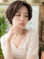 【スタイルは★ブックマーク★が便利】前下がりで小顔見せした丸みショート。ナチュラルボブやフェミニンボブ、大人ボブや前下がりボブ、ミニボブからのイメチェンに。斜めバングや厚めバングで目力UP。くせ毛風ゆるふわミディや耳かけウルフも大人かわいい。