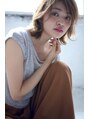 肩に当たる長さのボブスタイルは、毛先にカールをつけてあえて跳ねさせるのがおススメ♪カラーリングは9トーンのアッシュベージュで軽い印象に☆
