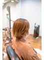 くせ毛と多毛がお悩みのお客様です。髪質に合わせてしっかっりカットすると綺麗におさまります☆バームのみで巻かずに仕上げます。カラーは秋に合わせてブラウンベージュで明るくてもしっとり仕上げます☆