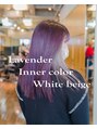 以前のブリーチを活かしたラベンダーブルーです。前回のインナーカラーには、ホワイトベージュをのせています☆同時施術で髪質改善もしていて、艶々です。ハイトーンには髪質改善オススメです☆