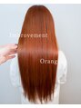 初めてのカラーや、ダブルカラー、髪質改善はお任せ下さい。以前にブリーチをしている状態です。毎回のケア(髪質改善)とオリジナルの配合で作るロングの艶髪オレンジです。様々な髪のお悩みを解消して行きます。是非一度ご相談下さい。