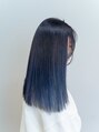 グラデーションでブリーチしたベース→ワンタッチで深いブルーをオンカラーでブルーブラックからネイビーのグラデーションに。★お客様のなりたいを可能な限り叶えます。髪のお悩みや、イメージ、何でもご相談下さい。★