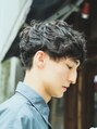 サイドとネープを刈り上げたツーブロックのマッシュスタイル。柔らかい動きが出るように表面にレイヤーを入れてパーマで動きをプラスしたスタイル。この秋一押し!