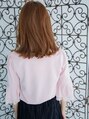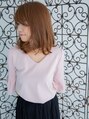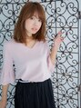 毛先の内巻き外巻きがミックスされたワンカールがふわっと女性らしさを感じさせる愛されセミディスタイル。目の上ギリギリで流した長めのバングは細い束感を作っているのでところどころおでこが透けるのがさらに愛されポイント!【小岩】