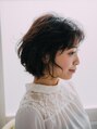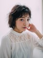 ミディアムボブにカールを散らしたスタイルです。ウエット系のジェルスタイリング剤で細く毛束を作り立体感のでるようにしています。襟足を外巻きにして丸いシルエットより四角いシルエットにしてカジュアルよりにしています。【小岩】
