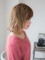 ワンレングスベースにレイヤーが入ったミディアムスタイル。巻いた時にふわっと感が出るようにカットしてます。カラーはブリーチをしてハイライトを入れた上にミルクティーカラーをオンカラー。根元からグラデーションカラーになります。【小岩】