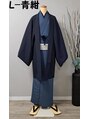 男性着物レンタルL-青紺(目安身長175-180cm)着付け付きレンタル内容:着物,羽織,半襦袢,角帯,羽織紐,腰紐,信玄袋,足袋,雪駄,(肌着にシャツ,ステテコなどお召しください)男性着物レンタルはご家族様と同時のご予約に限ります/免許証等の提示必要