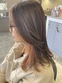 表面は落ち着いたブラウンカラーで上品に仕上げ、内側にほんのり暖色系のインナーカラーをプラス。派手すぎず、初めてのインナーカラーにもおすすめの大人ナチュラルスタイル。