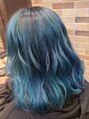 根元は地毛を活かして中間から毛先にかけてブリーチ!!カラートリートメントでターコイズブルーをON!! (※髪の状態や履歴によってブリーチの必要回数が異なります)
