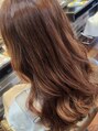 鮮やかなオレンジ味のあるブラウンでより可愛らしい雰囲気を♪ロングのレングスに大きく、しっかりリッジのあるカールのスタイリングが◎