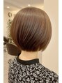 - 丸みのあるショートボブ。首周りスッキリで上品に。